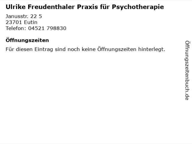 Frau Dipl.-Psych. Ulrike Freudenthaler ist eine erfahrene Psychotherapeutin mit Praxis in Eutin. Sie ist seit vielen Jahren in ihrer Fachrichtung tätig und bietet ihren Patienten individuelle und professionelle Betreuung. Ihre Spezialisierung liegt in der Psychotherapie, wobei sie sowohl Erwachsene als auch Jugendliche betreut.